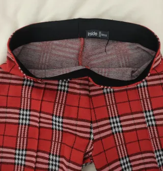 Pantalón de cuadros rojos de la marca Inside. Muy poco usado. - Diseño a cuadros en rojo, blanco y negro. - Corte ajustado. - Cintura elástica.