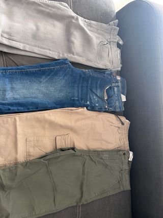 Lote de pantalones vaqueros para niño. - Pantalón vaquero azul. - Pantalón gris. - Pantalón verde oliva.