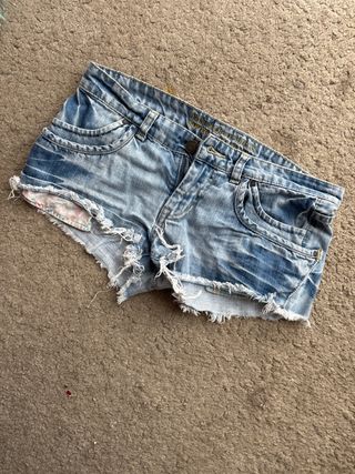 Shorts vaqueros de SuiteBlanco con un estilo desgastado y moderno. Perfectos para un look casual. - Diseño con rotos y flecos en el bajo. - Estampado floral en el interior de la cinturilla.