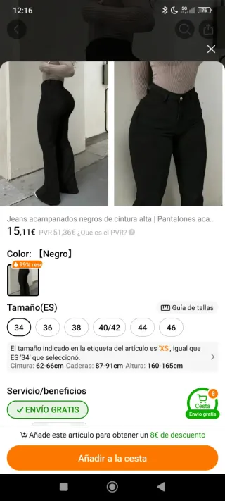 Pantalones negros de corte acampanado y cintura alta. Son cómodos y versátiles. - Tejido elástico. - Cierre de cremallera y botón. - Bolsillos delanteros y traseros.