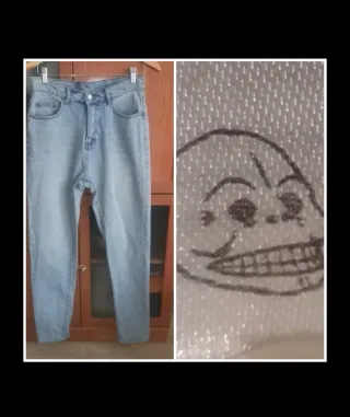 Pantalón vaquero de pitillo con estampado de camuflaje y de tiro alto. Usado, pero en buen estado.