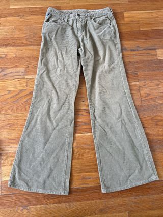 Pantalón de pana de corte acampanado. - Material: Pana. - Color: Verde oscuro. - Diseño: Pierna acampanada.