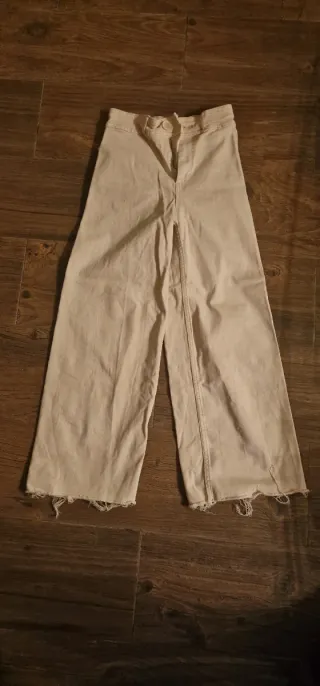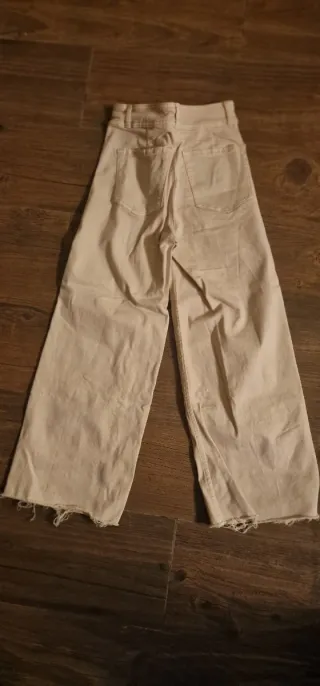 Pantalones de corte ancho de Zara. - Diseño de tiro alto. - Piernas amplias. - Bajo deshilachado.