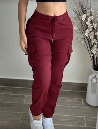 Pantalones Cargo Mujer Moda Elegante Rojo