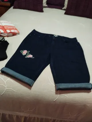 Pantalones vaqueros cortos de la marca Cortefiel con un bonito detalle floral. - Diseño corto. - Dobladillo en los bajos. - Estampado de flores.