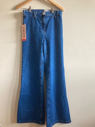 Pantalón vaquero de la marca Werit, con la etiqueta puesta, sin estrenar. - Corte acampanado. - Diseño de tiro alto. - Tejido denim. - Cierre de botón y cremallera.