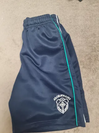 Pantalón corto deportivo con el escudo de Adoratrices. - Detalle de ribete en color verde. - Cintura elástica. - Talla 14