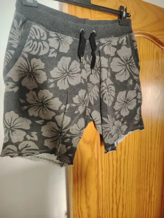 Pantalones cortos con un diseño llamativo de flores y hojas. - Cintura elástica con cordón. - Bolsillos laterales. - Bajo deshilachado.