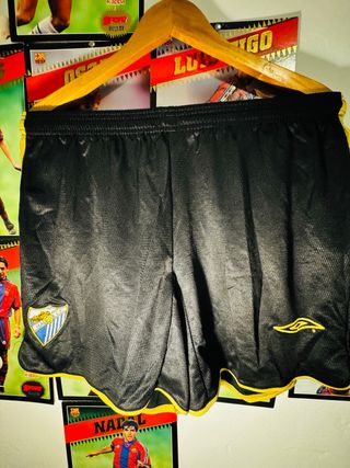 Pantalón corto deportivo con detalles en dorado. - Tejido ligero y transpirable. - Cintura elástica. - Escudo del Málaga C.F. en el lateral izquierdo. - Logo de la marca en el lateral derecho.