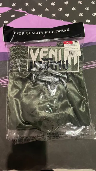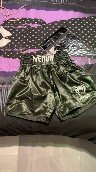 Pantalón de Muay Thai color verde de la marca Venum. Está nuevo con etiquetas y embalaje original. Lo vendo porque me queda grande y cobran mucho por devolverlo en la página de Venum.