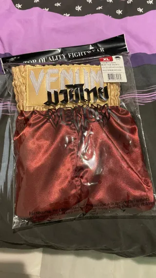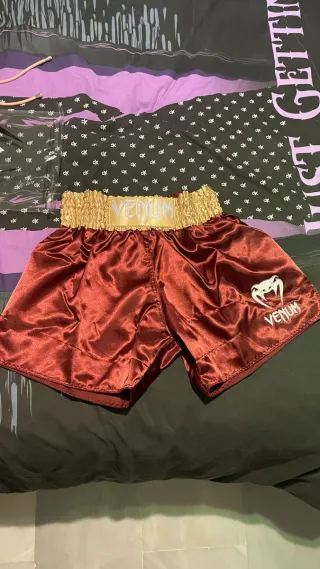 Pantalón de Muay Thai color burdeos y dorado de la marca Venum. Está nuevo con etiquetas y embalaje original. Lo vendo porque me queda grande y cobran mucho por devolverlo en la página de Venum.