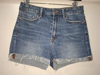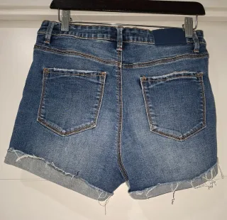Pantalón corto vaquero para mujer, con un diseño moderno y cómodo. - Tiro alto. - Efecto desgastado en los bajos. - Dobladillo enrollado.