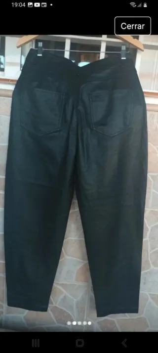 Pantalón de polipiel con un diseño moderno. - Talla S - Color negro - Marca Zara