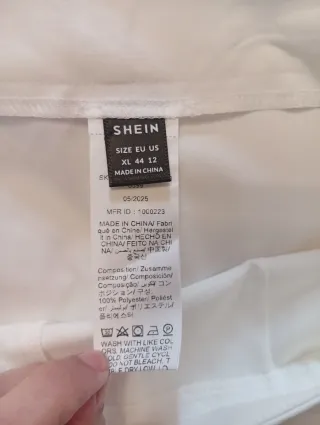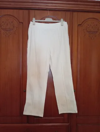 Pantalón blanco de Shein. (Talla XL). De corte recto. Lleva costuras decorativas en la parte delantera. Tejido ligero y cómodo. Nuevo. A estrenar. Medidas: Cintura 42 cm (por delante). Cadera 48 cm (por delante). Largo 99 cm.