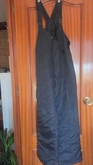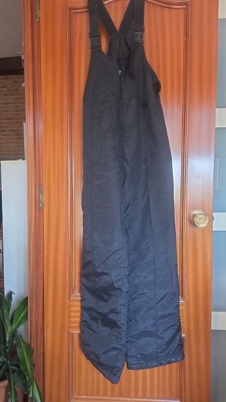 Pantalones de nieve negros para mujer. - Tirantes ajustables. - Cierre de cremallera frontal. - Diseño acolchado.