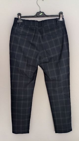Pantalón elegante de Zara para hombre en tono oscuro con un discreto estampado de cuadros. Perfecto para la oficina, reuniones o looks diarios de estilo smart casual. Corte limpio, favorecedor y muy cómodo. Detalles: - Talla: S (EUR S / USA S / MEX 30) - Color: oscuro con cuadro fino - Estado: excelente - Fabricado en Turquía - Corte: recto / ligeramente entallado - Con trabillas para cinturón, bolsillos laterales y bolsillos traseros Una opción ideal para quienes buscan un pantalón versátil y sofisticado que combine con cualquier outfit.