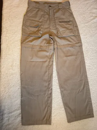 Pantalón convertible (zip-off) – se hace corto Pantalón con cremalleras en las perneras que permite convertirlo en short fácilmente. Muy práctico para senderismo, viajes o uso diario en verano. - Talla: L (cintura 90–95 cm, equiv. EU 48–50 aprox.) - Estado: buen estado - Color: Biege - Marca: Décathlon Cremalleras funcionan perfectamente. Tejido ligero y cómodo. Entrega en mano o envío disponible.