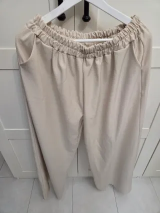 Pantalón estilo Palazzo de Zara en color beige. Un básico versátil para cualquier ocasión. - Corte ancho y fluido. - Cintura alta. - Bolsillo lateral.