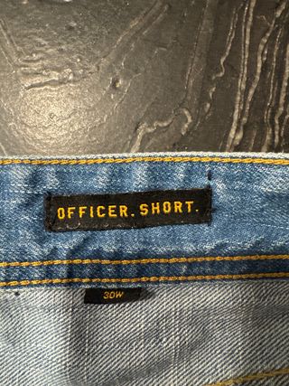 Pantalón corto de estilo vaquero con un diseño desgastado y moderno. Talla 30W - Cintura con cremallera y botón. - Bolsillos delanteros y traseros. - Dobladillo en los bajos.