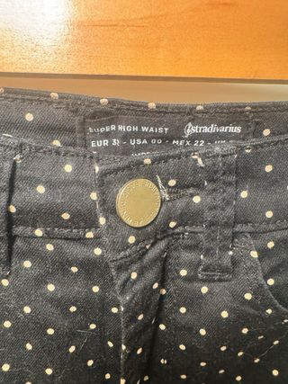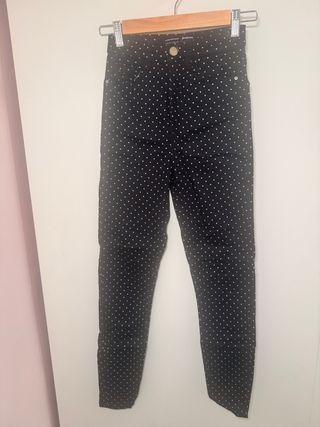 Pantalones pitillo de Stradivarius con un divertido estampado de topos. - Diseño ajustado. - Estampado de topos blancos sobre fondo negro.