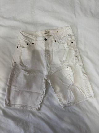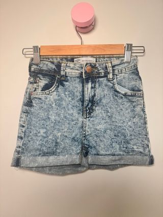 Pantalón corto vaquero con un llamativo efecto lavado. - Diseño moderno y juvenil. - Cintura con trabillas. - Cierre de botón y cremallera. - Dobladillo en los bajos.