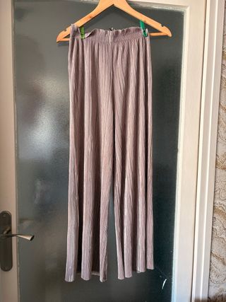 Pantalón de tela suave y cómoda, con un diseño ancho y moderno. - Cintura elástica con cordón ajustable. - Piernas amplias para mayor libertad de movimiento. - Tejido ligero y transpirable.