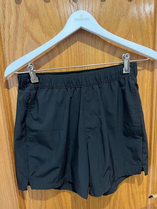 Pantalón corto de la marca Hollister en color negro. - Talla XS. - Cintura elástica. - Bolsillos laterales. - Logo de la marca bordado en la parte inferior.