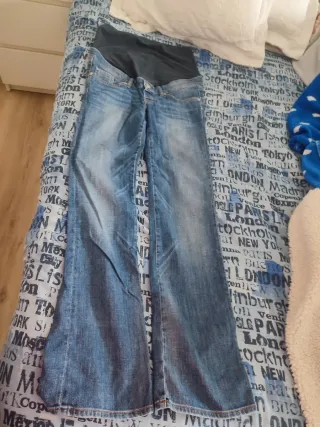 Pantalón vaquero diseñado para el embarazo, con un corte acampanado. - Tejido vaquero. - Cintura elástica adaptable.