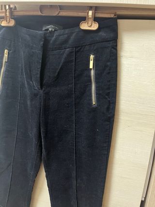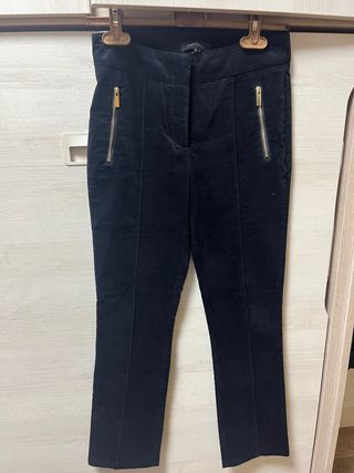 Pantalón de señora de terciopelo. - Diseño elegante con cremalleras doradas. - Corte recto. - Tejido suave y confortable.