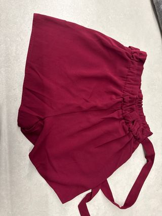 Pantalón corto de color granate con un diseño moderno y cómodo. - Cinturón a juego para anudar. - Cintura elástica con detalle fruncido.
