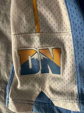 Pantalón corto deportivo con un diseño llamativo. Talla Xs de niño - Logo DN con montañas en la parte frontal. - Tejido de malla transpirable. - Paneles laterales en color azul.