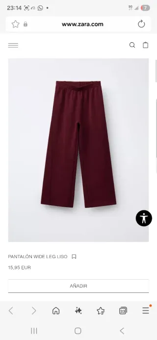 Pantalón de Zara de corte ancho y liso. - Color rojo. - Diseño de pierna ancha tallla desde la 6 -14