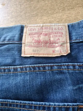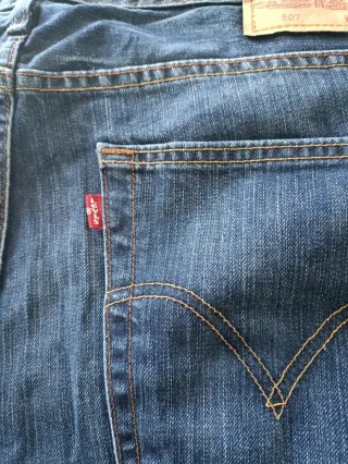 Pantalón vaquero Levi's original. - Modelo 507. - Talla W38 L34. - Color azul. Mide 1,17 hasta cintura Interior pierna hasta abajo 85 cm y cintura 52. Filo desgastado del roce. Fácil coser .
