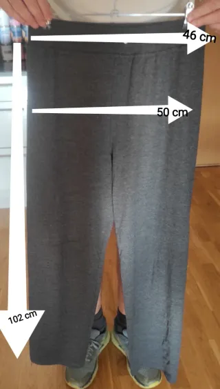 NO Negociable, pone talla 44 pero es más grande al llevar elastán espande. Pantalón de mujer muy cómodo MEDIDAS 46 cm cintura, 50 cm cadera, 108 cm largo Algodón y elastán - Tejido suave y elástico. - Cintura elástica SIN cordón.(Foto) - Corte ancho y holgado.