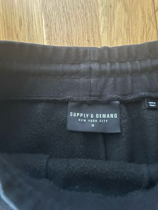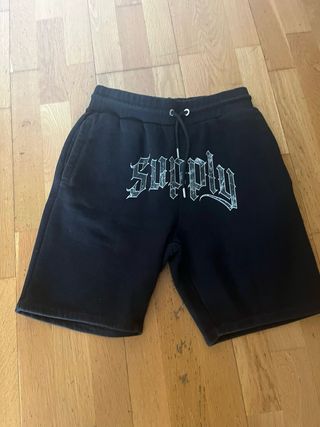 Pantalones cortos negros con un diseño llamativo. - Cintura con cordón ajustable. - Bolsillos laterales. - Estampado Supply en la parte delantera.