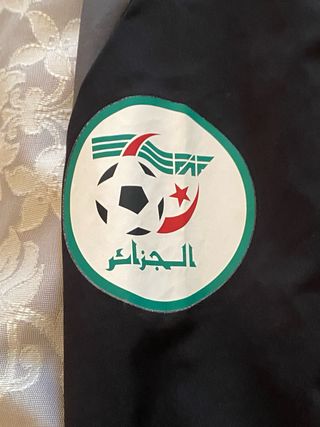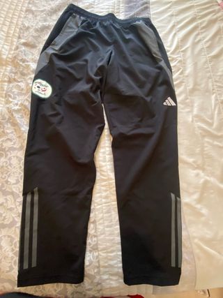 Pantalón de chándal con detalles grises y el escudo de Argelia. - Diseño con tres bandas grises en las perneras. - Logo de Adidas en la parte frontal. - Cintura elástica con cordón para ajuste.