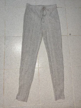 Pantalones largos de tejido acanalado en color gris. Talla M-L. - Cintura elástica. - Diseño ajustado. - Tejido suave y cómodo.