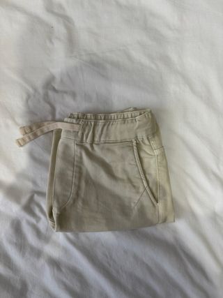 Pantalón de pana en color blanco, con un diseño moderno y cómodo. - Cintura elástica con cordón. - Bolsillos laterales. - Tejido de pana con canalé.