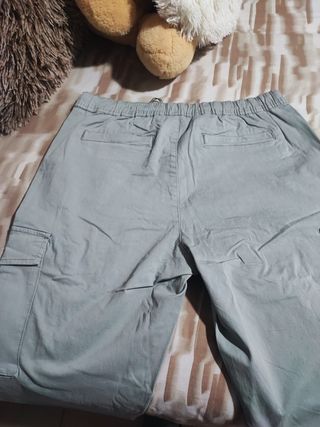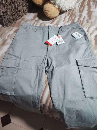 Pantalón tipo cargo de la marca LEFTIES en color gris, nuevo con etiqueta y sin estrenar. Corte recto y ligeramente corto por la parte de abajo, queda a la altura del tobillo como se ve en la foto, ideal para un look casual. Talla XL equivalente a 34 (EUR/MEX), con cintura parcialmente elástica para más comodidad. Lleva bolsillos laterales tipo cargo y bolsillos traseros, perfecto para uso diario, viajes o trabajo tipo uniforme. Tela ligera y cómoda, sin manchas ni desperfectos