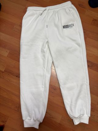 Pantalón deportivo de la marca Hoodrich en color blanco. Diseño moderno y cómodo. - Cintura con cordón ajustable. - Bolsillos laterales. - Puños elásticos en los tobillos.
