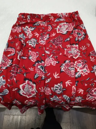 Prenda de vestir tipo falda pantalón con un diseño de cuadros llamativo. - Diseño de cuadros en tonos rojos y negros. - Estilo moderno y versátil.