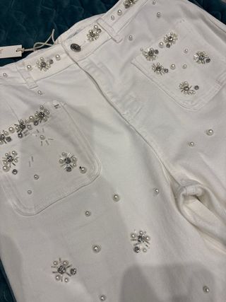 Pantalones Zac & Zoe blancos con pedrería