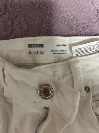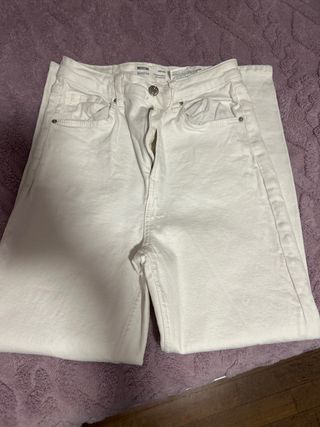 Pantalón tejano de mujer de la marca Bershka. - Color blanco. - Diseño de cinco bolsillos. - Cierre de cremallera y botón.