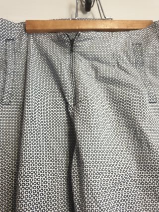 Pantalón de vestir con un estampado moderno, ideal para la temporada de verano. Su diseño combina elegancia y comodidad. - Estampado distintivo en tonos grises y blancos. - Talla S / 36 / 8.