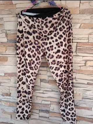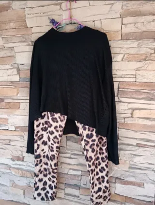 Conjunto de dos piezas con un diseño llamativo. - Top de manga larga en color negro. - Pantalón con estampado de leopardo.,pantalón talla L y camiseta XL ,el precio es por las dos piezas