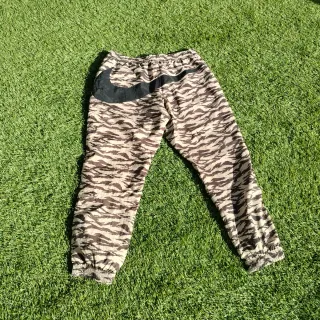 Pantalones deportivos Nike con un llamativo estampado animal. - Diseño vintage. - Cintura elástica. - Puños ajustados en los tobillos.