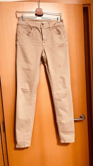 Pantalón de corte ajustado. - Cintura con cierre de botón y cremallera. - Bolsillos delanteros y traseros.