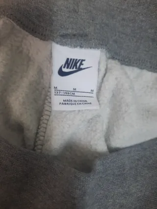Pantalón deportivo Nike de color gris, talla M. - Medidas: 137-146 cm. - Fabricado en China.