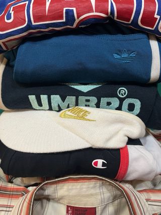 - Son originales, de marca y de segunda mano - tallas desde xs hasta xl - Estan en muy buen estado - camiseta de marca totalmente gratis incluida en el lote (valorada de 5-10€) sudadera 1: 12€ sudadera 2: 12€ pantalones cortos: 12€ polo: 7€