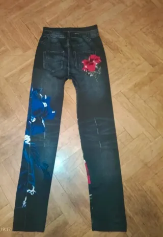 Pantalón vaquero pitillo con un bonito estampado. 5 € cada uno o 3 por 10€. Ver más en mi perfil. - Diseño ajustado. - Estampado geométrico en tonos azul y blanco.